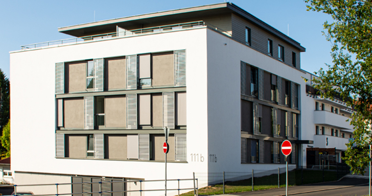 Ein ansprechend klar strukturiertes Bauwerk. Wir lieferten die passenden Fenster und Türen.