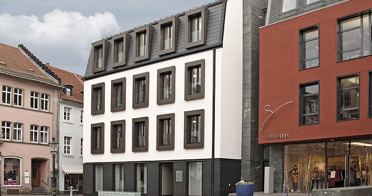 Mitten im Herzen der Barockstadt Fulda, direkt am Schlossgarten gelegen, steht die neue, sehr große Wohnanlage „WohnenPLUS" für gehobene Wohnansprüche, ausgestattet mit Fenstern von Münkel.