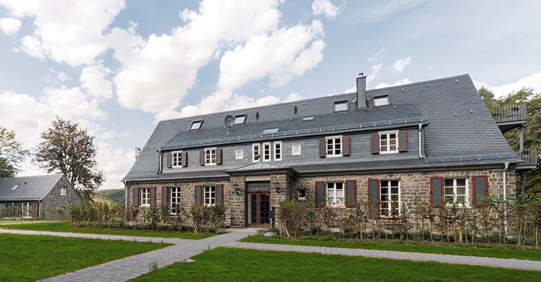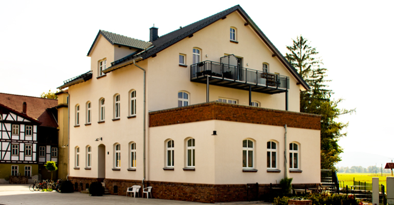 Ausdrucksvolle Fenster nach historischem Vorbild zieren das liebevoll hergerichtete Gebäude. Die neue Bausubstanz schafft spannende Kontraste. Alle Fenster und Glasflächen stammen aus dem Hause Münkel.