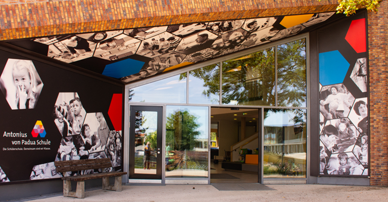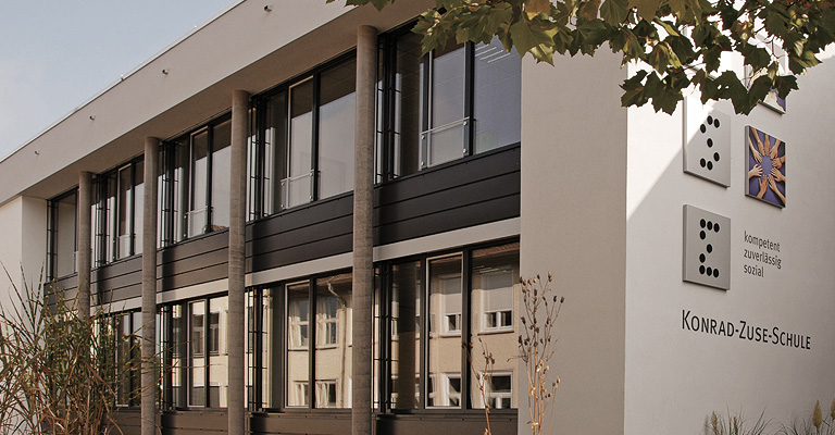 Moderne Aluminiumrahmen sorgen für Helligkeit und Klarheit der architektonischen Struktur. Münkel-Fenster geben den Rahmen für moderne Bildung in Hünfeld.